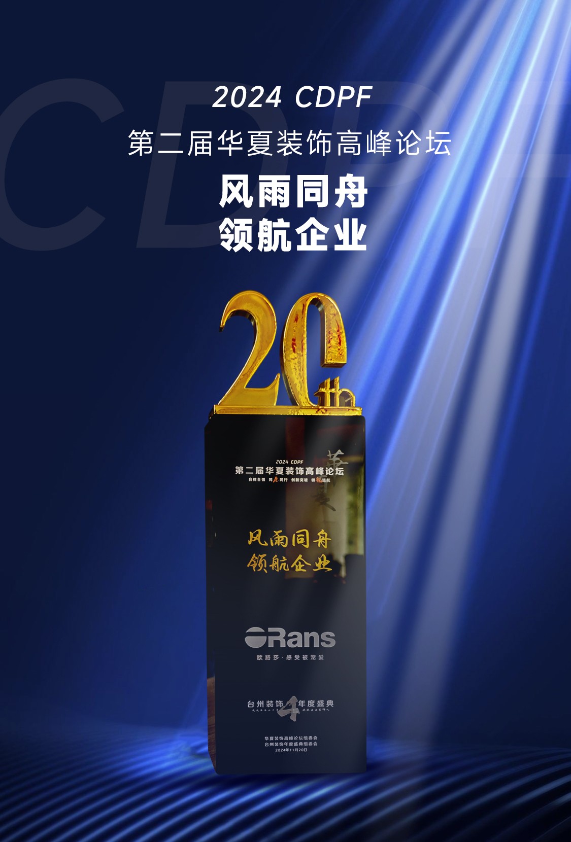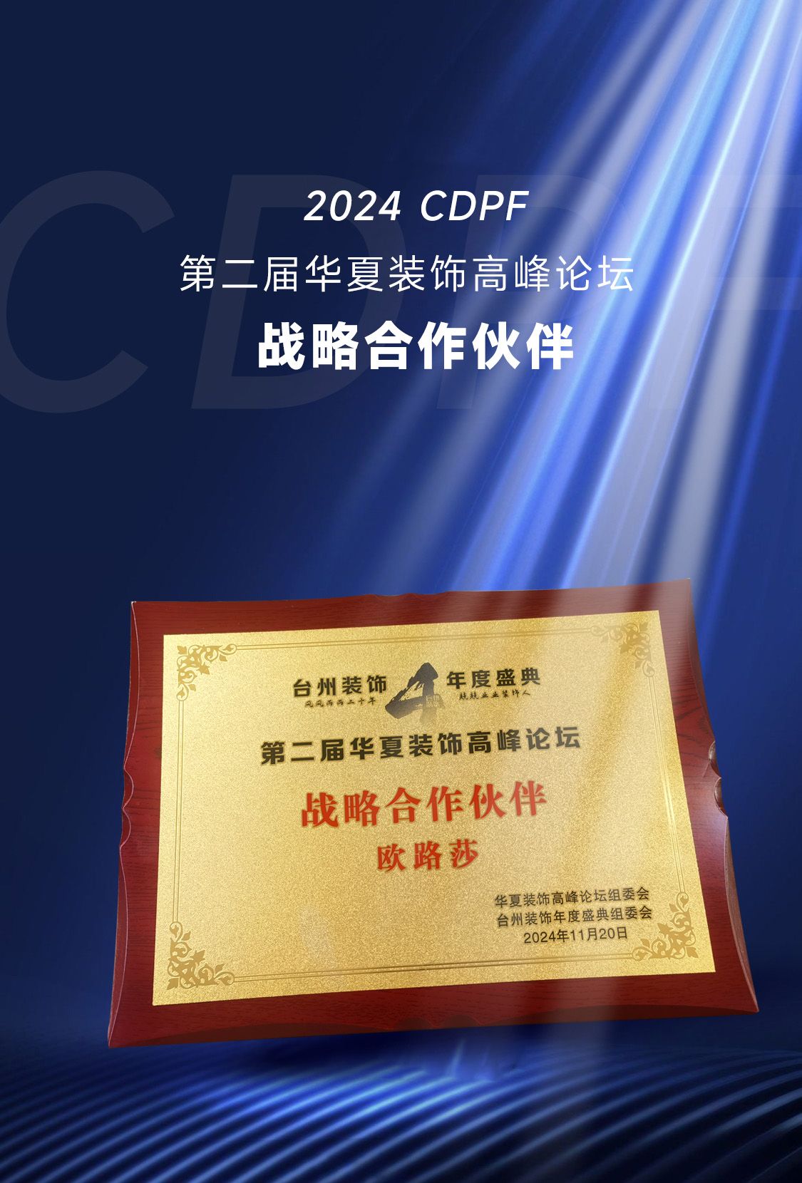 11月20日,2024·CDPF 第二屆華夏裝飾高峰論壇暨第四屆臺州裝飾協會年度盛典在浙江臺州白天鵝酒店隆重舉辦。歐路莎衛浴作為輪值會長及協辦單位,董事長林華友應邀出席并作為論壇嘉賓參與重要議題研討。