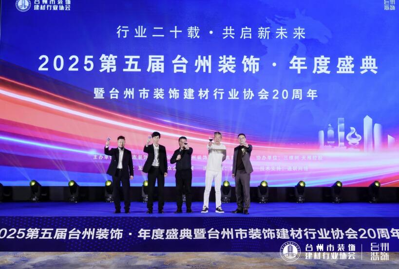 2月5日,“行業(yè)二十載?共啟新未來”2025臺州裝飾年度盛典暨臺州市裝飾建材行業(yè)協(xié)會二十周年慶典在君瀾·飛龍山莊隆重舉行。
