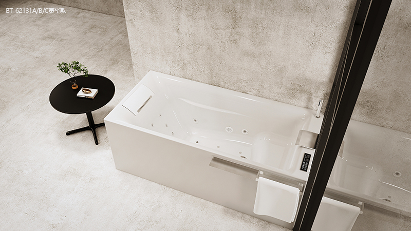 龍頭控制、手持花灑、瀑布進水器、溢水 +下水組合、防臭排水、內(nèi)嵌枕頭、淺水座位。