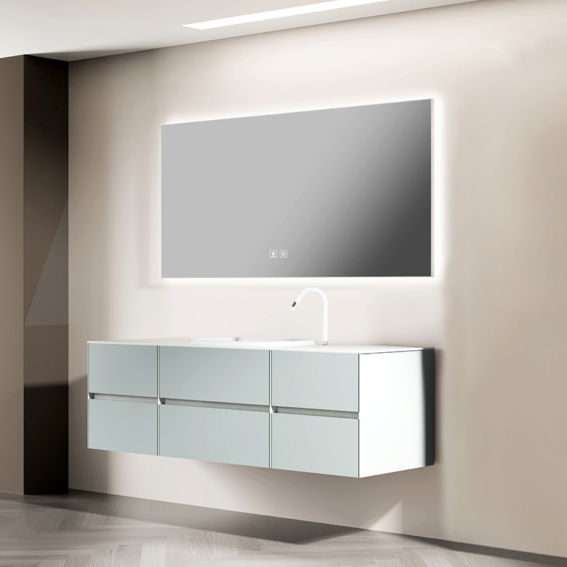 材質:白色奇美石一體盆/油漆鼠尾草綠/智能平板鏡/多層實木