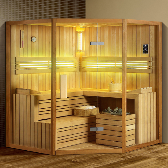 桑拿爐、暖光角燈、夢幻彩燈靠背、觸控系統(tǒng)(含F(xiàn)M收音、藍牙音樂、智能童鎖、臭氧消毒)、水晶文化石、沙漏、桑拿石、木桶、木勺、、干蒸爐護欄、坐凳及腳凳裙邊。