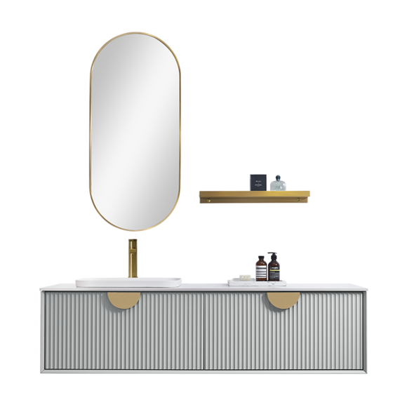 波紋線條元素給衛浴空間增添了幾分靈動,與鎏金圓弧拉手巧妙搭配,盡顯優雅時尚。